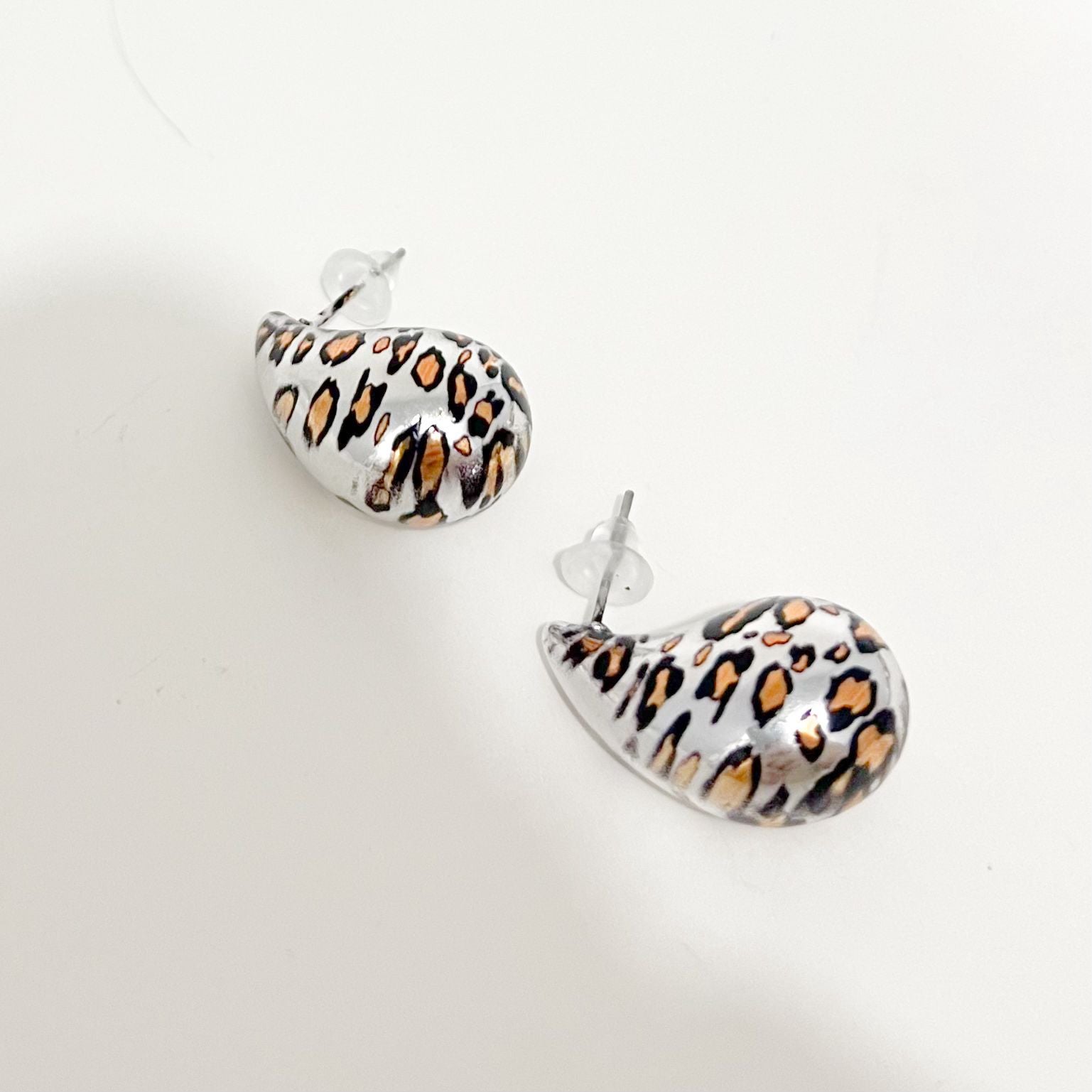 Arete Gota Animal Print Plateado